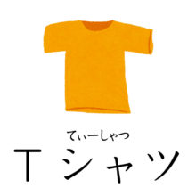 本日も衣服の名前です!全部で5つご紹介します。 ①Tシャツ(てぃーしゃつ) ②下着(したぎ) ③ズボン(ずぼん) ④スカート(すか …