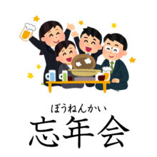 今日は日本の12月の風物詩です!全部で5つご紹介します。 ①忘年会(ぼうねんかい) ②お歳暮(おせいぼ) ③大掃除(おおそうじ) …