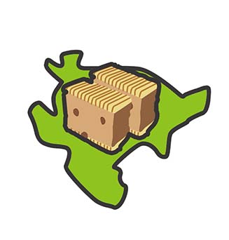 スポンジのような生地に豆や栗を混ぜ込んだ「浮島(うきしま)」と呼ばれる和菓子をベースにし、バウムクーヘンで挟み込んだ銘菓になります。佐賀錦(さがにしき)という伝統的な織物(おりもの)をイメージされ和風と洋風を合わせたお菓子は、日本の優しい素朴な味と新しい味が美味しいと古くから愛されてきたそうです。緑茶以外にも紅茶やコーヒーとも相性が良いのでお茶菓子として一緒に食べてみてはいかがでしょうか。