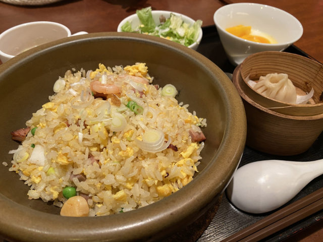 チャーハンが食べたくなったそこのあなたに土鍋でチャーハンが食べられるご飯屋さんを紹介します。お店の名前は「口福炒飯楼」。新宿の駅と直結している「新宿ミロード」の9階にあります。チャーハン専門店というだけあって種類も豊富。餡がかかってあるチャーハンや麻婆豆腐がかかってあるものまで、迷ってしまうくらいメニューがあります。しかも「サラダ」「スープ」「おかず」「デザート」付き、サイズもMとLで選べます!Mサイズでも量は多めなので満足感たっぷりです。写真は「五目土鍋チャーハン」お米はパラパラで味は濃すぎずエビはぷりっぷりでおいしかったです!
