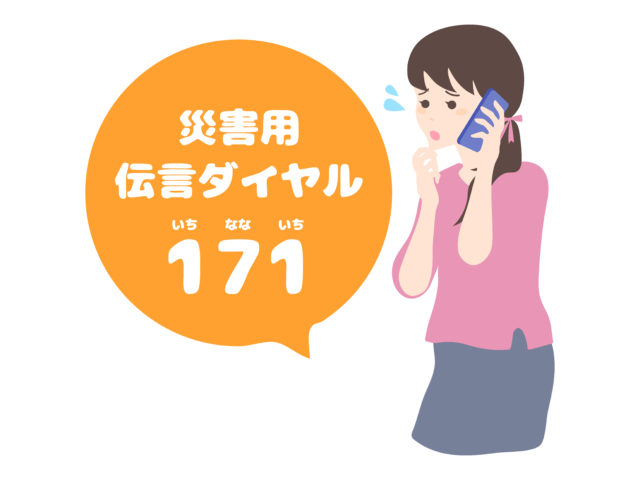 「171」に電話をかけると、伝言を録音・再生ができるサービスです(災害が発生していないときはつながりません)。詳しいことは動画が公開されています。