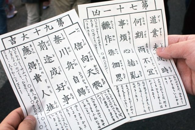 「大吉」はもちろんこの中で一番良い運勢、「大凶」は一番悪い運勢ということになってしまいますが、これはあくまで神さまや仏さまからのお告げ=メッセージ。「大凶」と書かれていても、前回ご説明した「和歌」の内容や、項目ごとの運勢をよく読めば悪いことばかり書いてあるわけではありません。大凶だからと落ち込まずに、いい方向へと変えていくためのきっかけになるんだ、と捉えるといいかと思います。