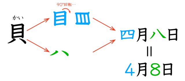 4月8日は「貝(かい)の日」です。渥美半島にある愛知県田原市の「渥美商工会」が制定しました。渥美半島は日本一いろいろな貝が採れると言われています。日付は「貝」の文字を上下に分けると「目」と「八」になり、「目」を90度横にすると漢字の「四」に似ていることからだそうです。