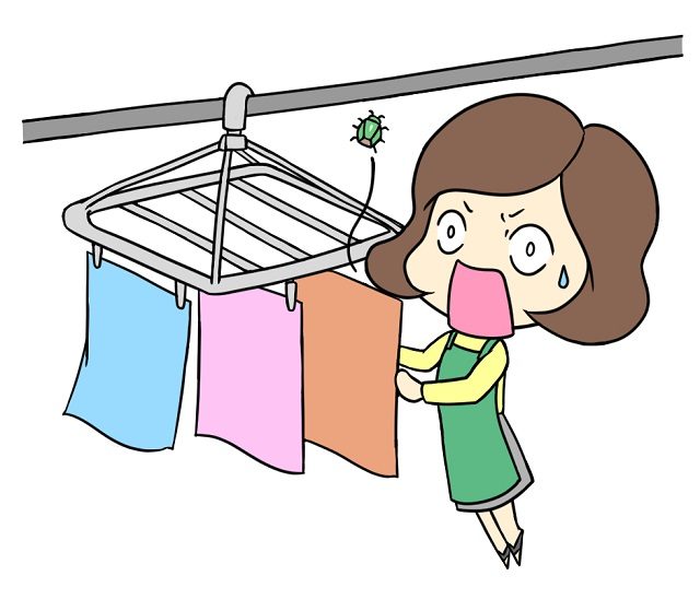 といったことで、虫から洗濯物を守るようにしましょう。日当たりの良い場所には虫が卵を産むことがあるので、物干し竿や窓に卵が産み付けられていないか、ときどき確認するのも忘れないでください。