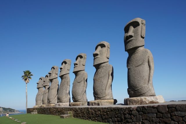 イースター島から認定された世界で唯一の7体のモアイ像は触ると願いが叶うと言われています。