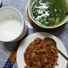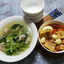 Phóng sự lần này sẽ là thực đơn có sử dụng gia vị không dùng cho món ăn ở Nhật Bản. 【Thực đơn】 Canh súp cải ngọt và thịt viên Thịt ba chỉ kho trứng Canh súp cải ngọt với thịt viên được nêm bằng bột nêm từ gà và muối. Thịt ba chỉ kho trứng thì màu cam tôi đã nghĩ là màu của …