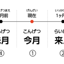 Lần này tôi xin giới thiệu tới các bạn cách gọi của「năm nay・năm ngoái ・năm sau」,đã được sắp bằng sơ đồ tiếng Nhật theo thư tự thời gian . ① Hiện tại … tháng này ( kongetsu ) ② 1 tháng sau … tháng sau ( raigetsu ) ③ 2 tháng sau … tháng sau nữa (saraigetsu) ④ 1 tháng trước … tháng trước (sengetsu) ⑤ 2 tháng trước … …