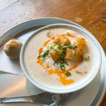 Mọi người đã thử qua món ăn sáng phổ biến của Đài Loan là súp đậu nành mặn chưa? Súp đậu nành mặn là loại súp được cho thêm giấm vào sữa đậu nành để làm đông.Lần này ở quán Tokyo mame hana seikatsu nổi tiếng với “bữa sáng Đài Loan”, tôi đã thử món súp đậu nành mặn và bánh dẻo hoa tươi. Súp …