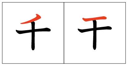 Cách phân biệt giữa hai chữ là chữ hán trên cùng là「ノ」hay「一」.