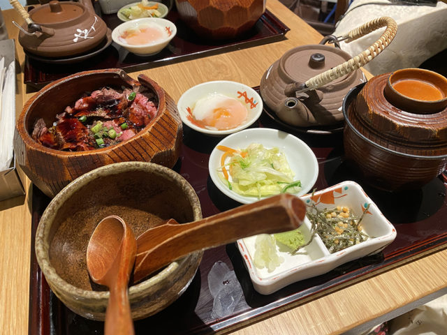 Những lúc muốn ăn sang chảnh thì “harami (thịt bụng bò) trong thố”(ちょっと贅沢したい時は「ハラミのひつまぶし」)