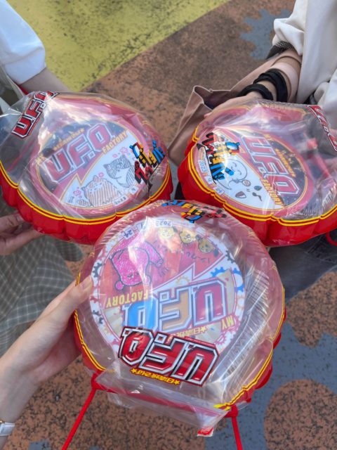 Sau khi nhờ nhân viên chọn nguyên liệu, cho vào và đóng nắp lại là xong.Thành phẩm có thể được bơm căng bằng không khí và mang đi như một chiếc túi, như trong ảnh nên ngay cả trẻ nhỏ cũng có thể yên tâm mang về nhà.Tại sao không thử tự làm mỳ UFO của riêng mình khi ghé thăm Yomiuri Land?