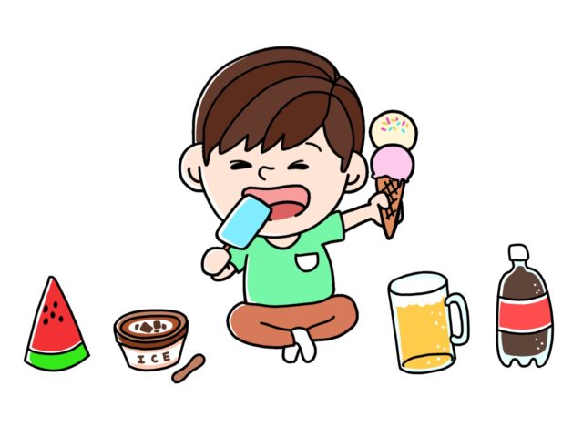 Lưu ý không nên ăn uống quá nhiều đồ lạnh(冷たいもののとりすぎに注意)