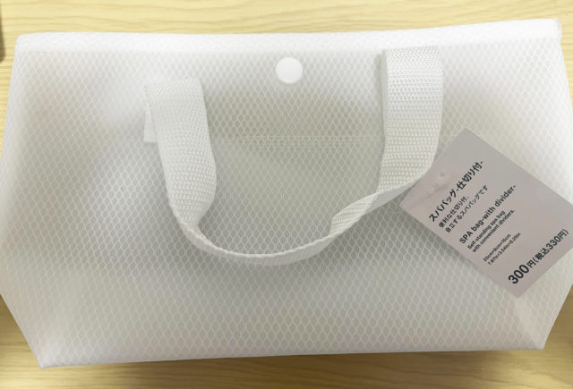 Vì vậy, tôi sẽ giới thiệu một chiếc túi tiện lợi mà bạn có thể sử dụng để đựng dầu gội và các vật dụng khác khi đến suối nước nóng hoặc nhà tắm công cộng! Cái trong ảnh tên là túi spa, tôi mua nó ở Daiso với giá 500 yên.