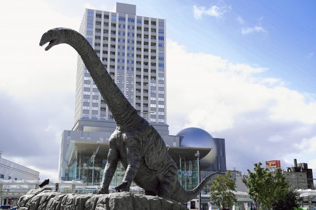 Tỉnh Fukui còn được gọi là vương quốc khủng long vì nhiều hóa thạch khủng long đã được tìm thấy ở đó, và có một tượng đài được làm theo kích thước thật của một con khủng long tại nhà ga, giống như con khủng long trong ảnh!